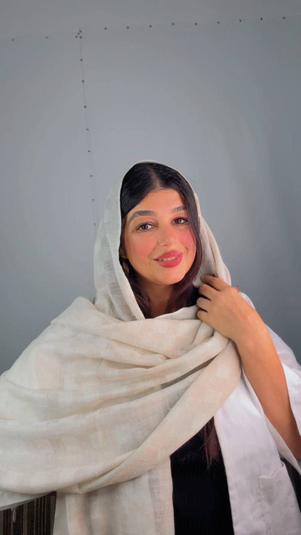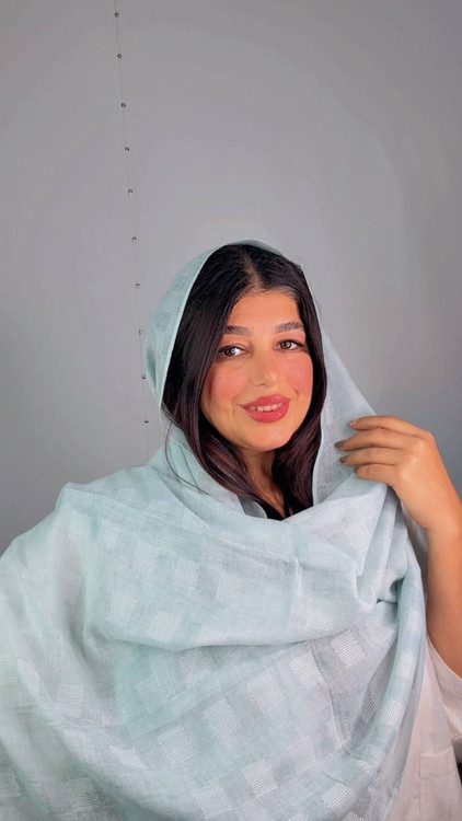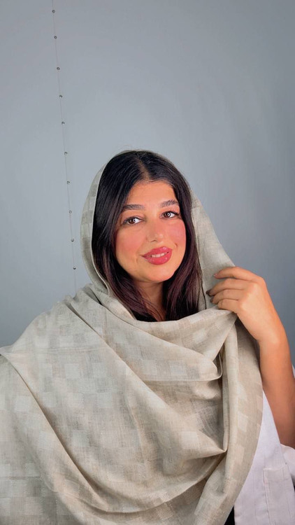 بافت این شال بسیار نرم، سبک و خوشحس است. در تصویر کاملاً مشخص است که شال روی شانهها و سر با لطافت و نرمی مینشیند و هیچ حالت خشکی یا ایستایی مصنوعی ندارد. این جنس نرم، تجربه استفاده روزمره را دلپذیر کرده و برای تمام فصلها بهخصوص بهار و تابستان، انتخابی فوقالعاده است.