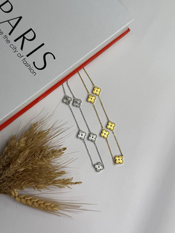 ظرافت ساخت گل چهاربرگ، لبهی صاف، آبکاری براق و نگینکاری دقیق (در مدلهایی که نگین دارند) کیفیت کار را کاملاً تثبیت میکند. زنجیر سبک و خوشفرم دارد و روی گردن بهزیبایی قرار میگیرد؛ نه میچرخد، نه گره میخورد، و نه احساس سنگینی ایجاد میکند.