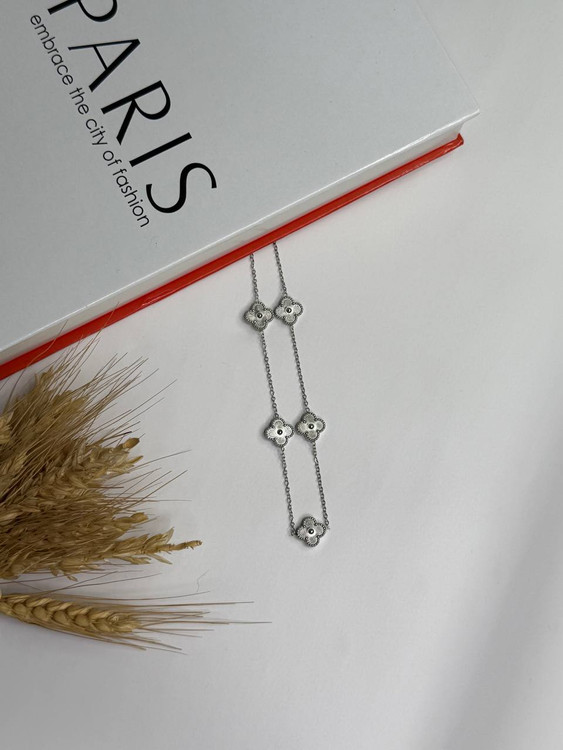 گردنبند استیل ونکلیف یکی از زیورآلاتی است که به محض پوشیدن، تأثیر شیکبودنش در استایل کاملاً مشخص میشود. طراحی چهاربرگ نمادین آن بهقدری ظریف و چشمنواز است که هم در استایلهای رسمی جلوه میکند و هم در استایلهای روزمره، حس لوکس و مرتببودن میدهد.