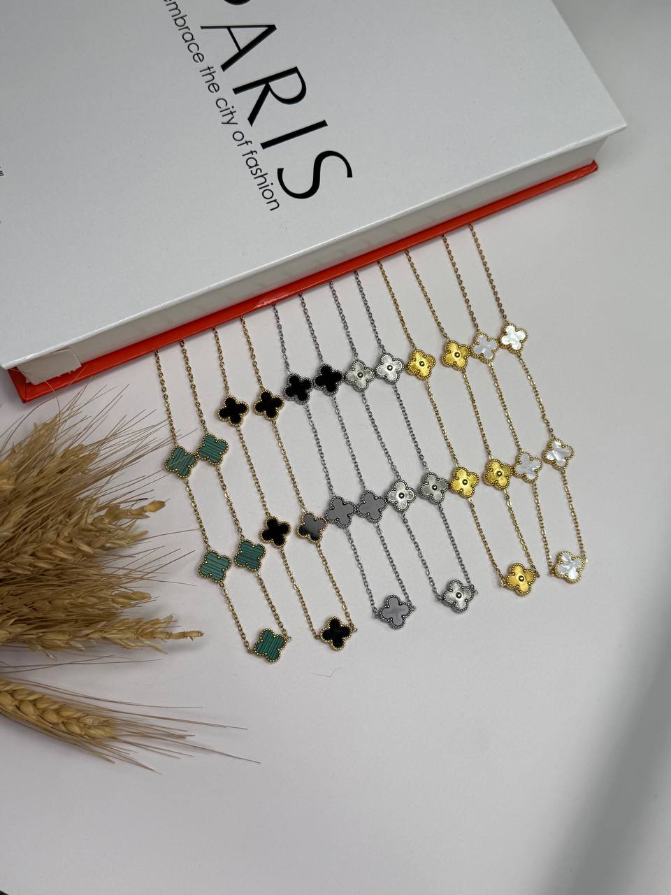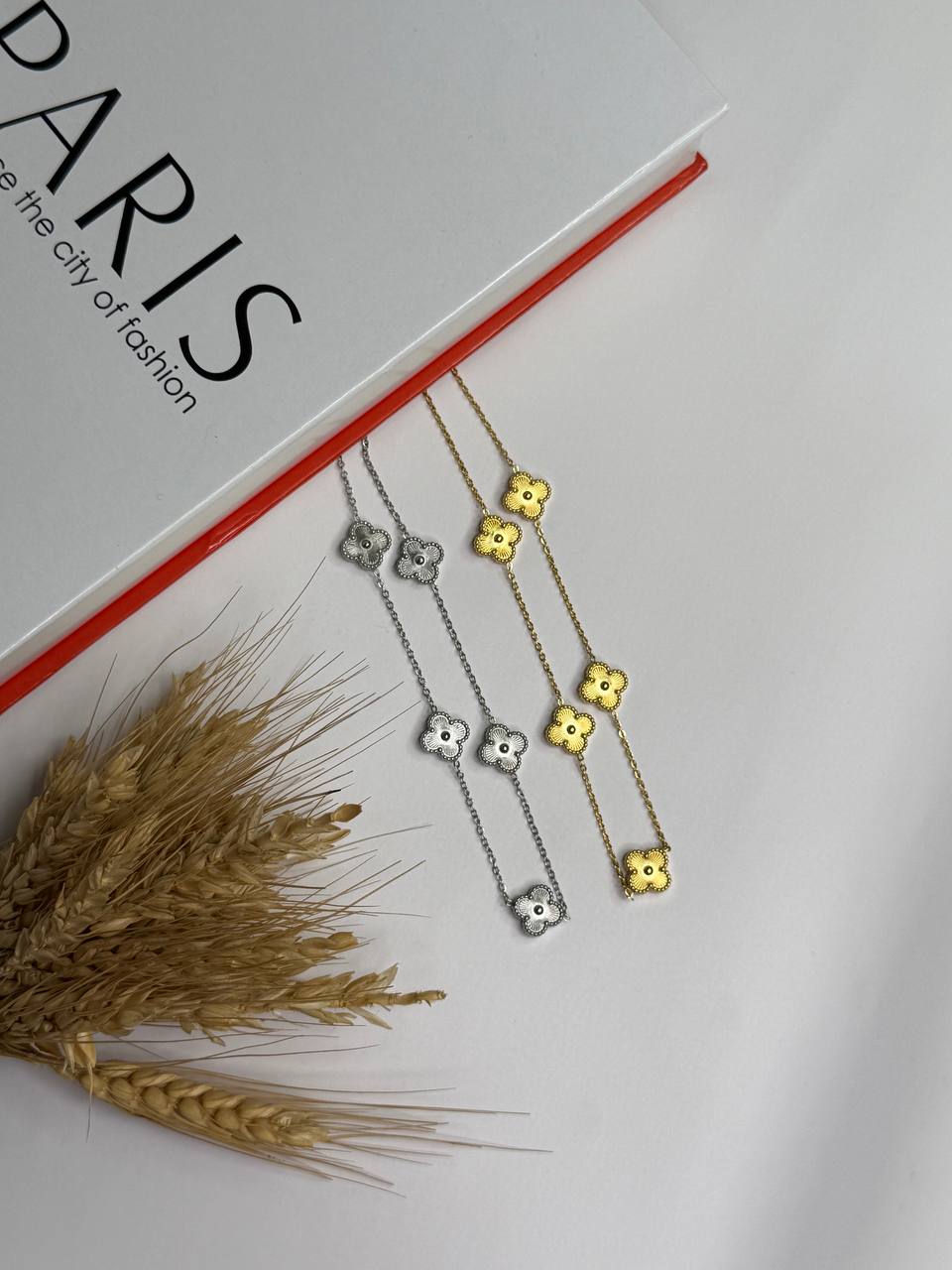 گردنبند استیل ونکلیف یکی از زیورآلاتی است که به محض پوشیدن، تأثیر شیکبودنش در استایل کاملاً مشخص میشود. طراحی چهاربرگ نمادین آن بهقدری ظریف و چشمنواز است که هم در استایلهای رسمی جلوه میکند و هم در استایلهای روزمره، حس لوکس و مرتببودن میدهد.