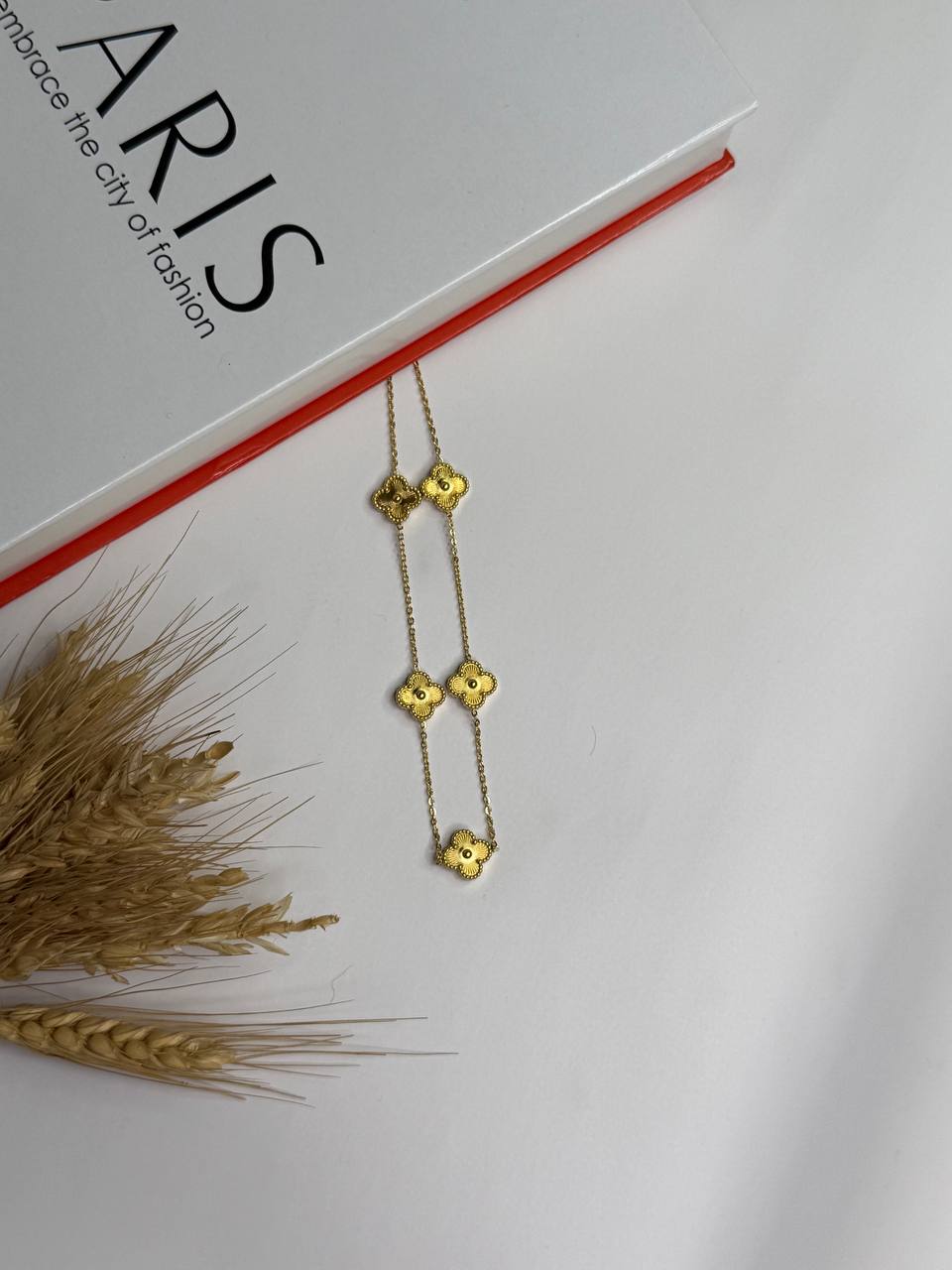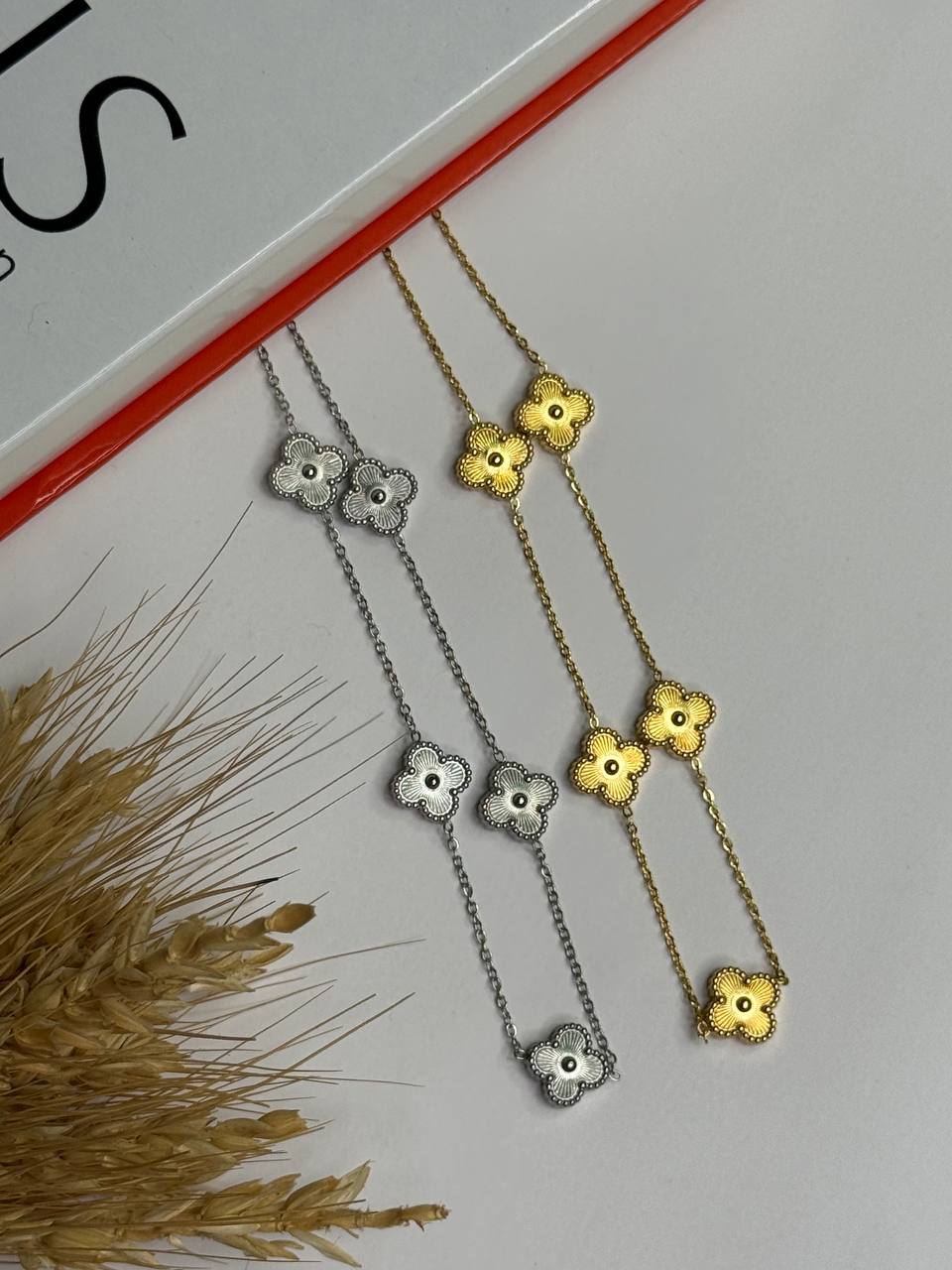 ظرافت ساخت گل چهاربرگ، لبهی صاف، آبکاری براق و نگینکاری دقیق (در مدلهایی که نگین دارند) کیفیت کار را کاملاً تثبیت میکند. زنجیر سبک و خوشفرم دارد و روی گردن بهزیبایی قرار میگیرد؛ نه میچرخد، نه گره میخورد، و نه احساس سنگینی ایجاد میکند.